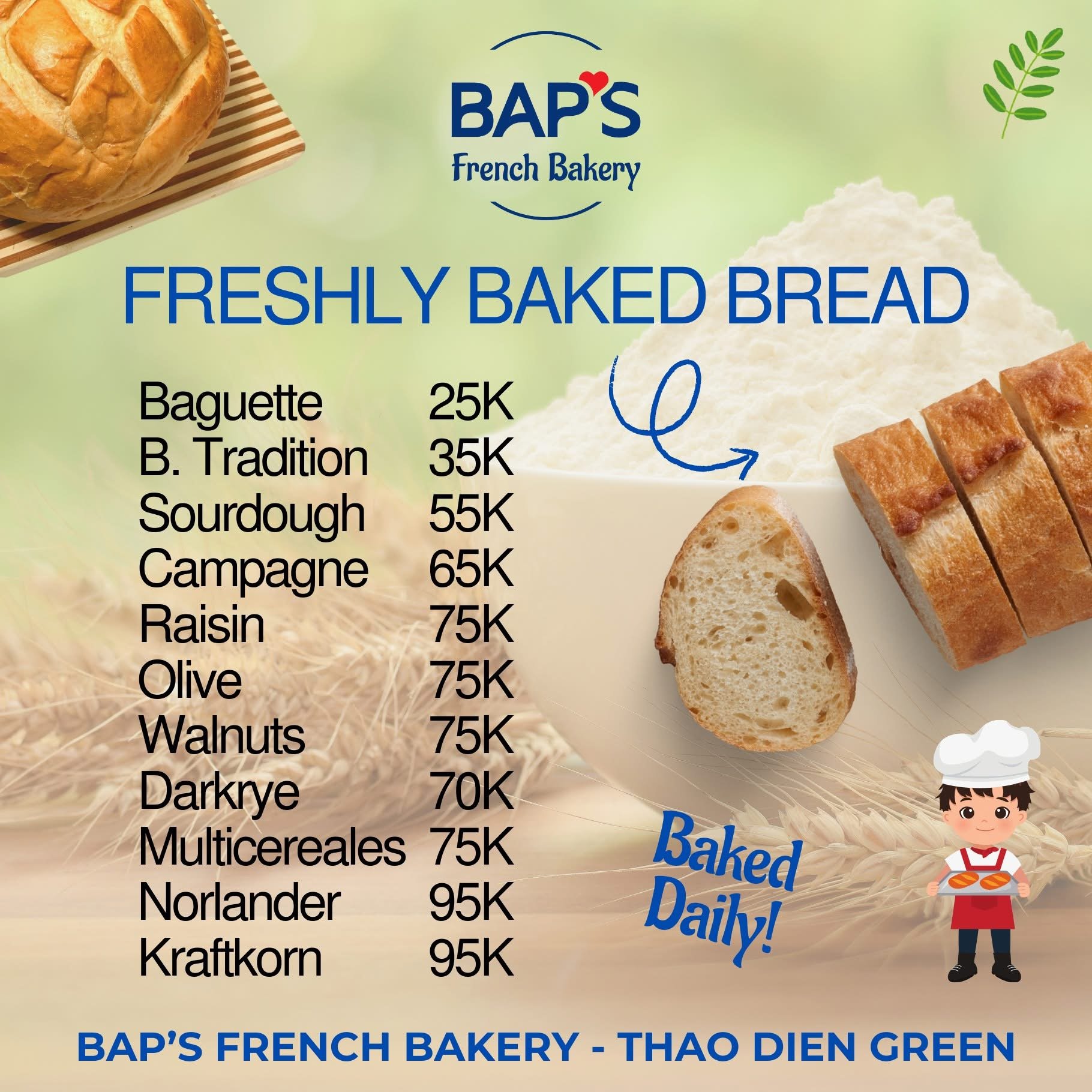 - BAP’S French Bakery is considered moderately priced for the Thao Dien area. It is a popular bakery suitable for coffee, solo, family.