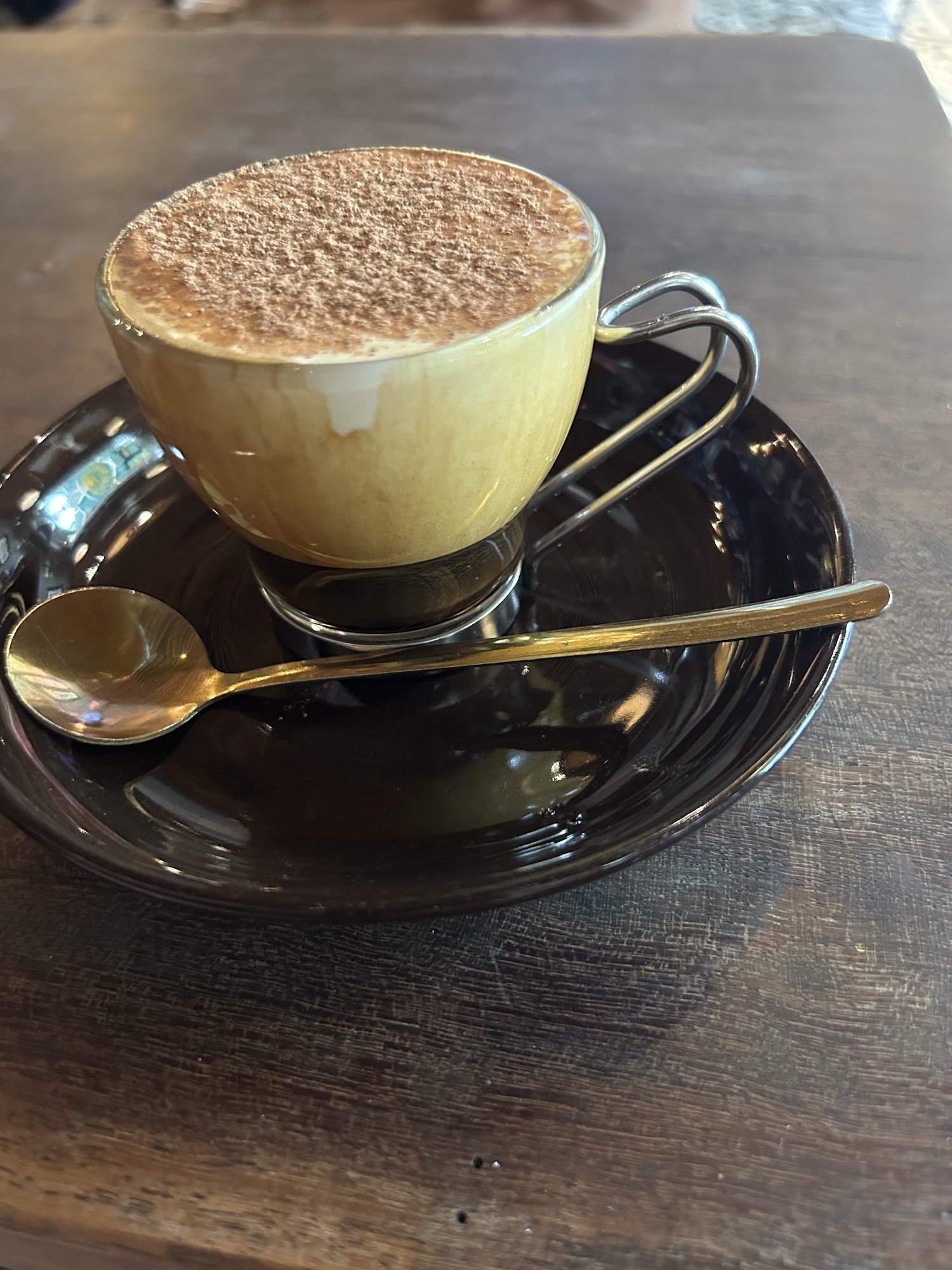 Nice little cafe with a dark inner vibe, nice tunes, mostly local customers right now. Got a salt coffee and it is very rich, very tasty, and very creamy. Nice one 👊