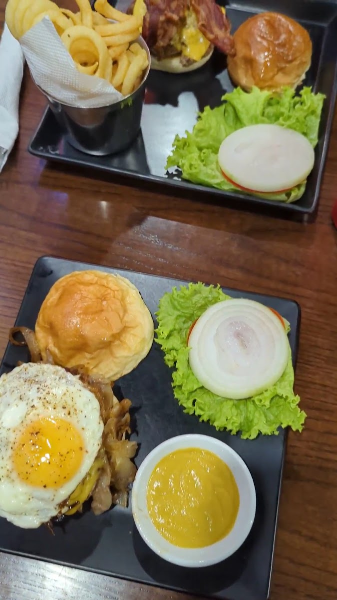 Probably the best burgers in Saigon! ♥️ Personally I love 'sloppy burgers', not neat ones. Good burgers are all about the ingredients. The burgers are cooked perfectly, still pink and juicy. I usually order a double burger, a triple is too much for me! Thick cut bacon. Blue cheese. Pulled pork. Ooof. All the extras are quality. Tuesday 10% off. Dine in only. The restaurant is small but a nice ambience. The kitchen is open and you walk through it to the bathroom. And it's a serious kitchen, they do everything in-house. Owner is lovely and speaks good English. Most of the time I order on Grab. And they always deliver fast.